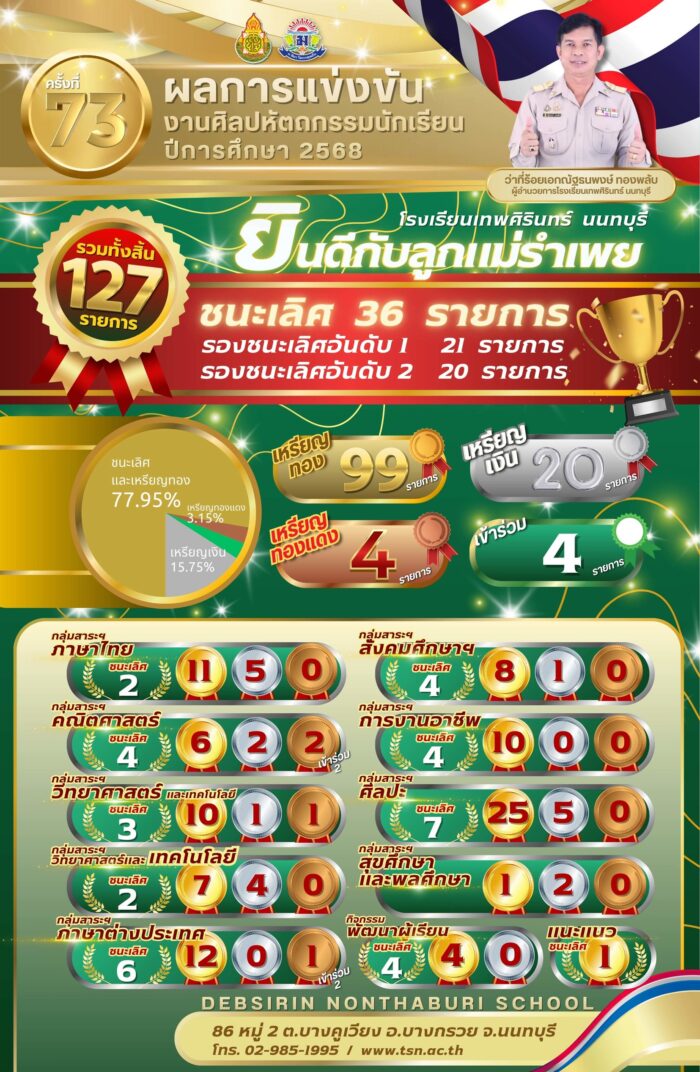 ผลการแข่งขันงานศิลปหัตถกรรมนักเรียน ปีการศึกษา 2568 เขียนเมื่อ 23 มกราคม 2026 18:56 น. | หมวดหมู่ : ข่าวสาร, ผลงานนักเรียน | โดย Web Team 20